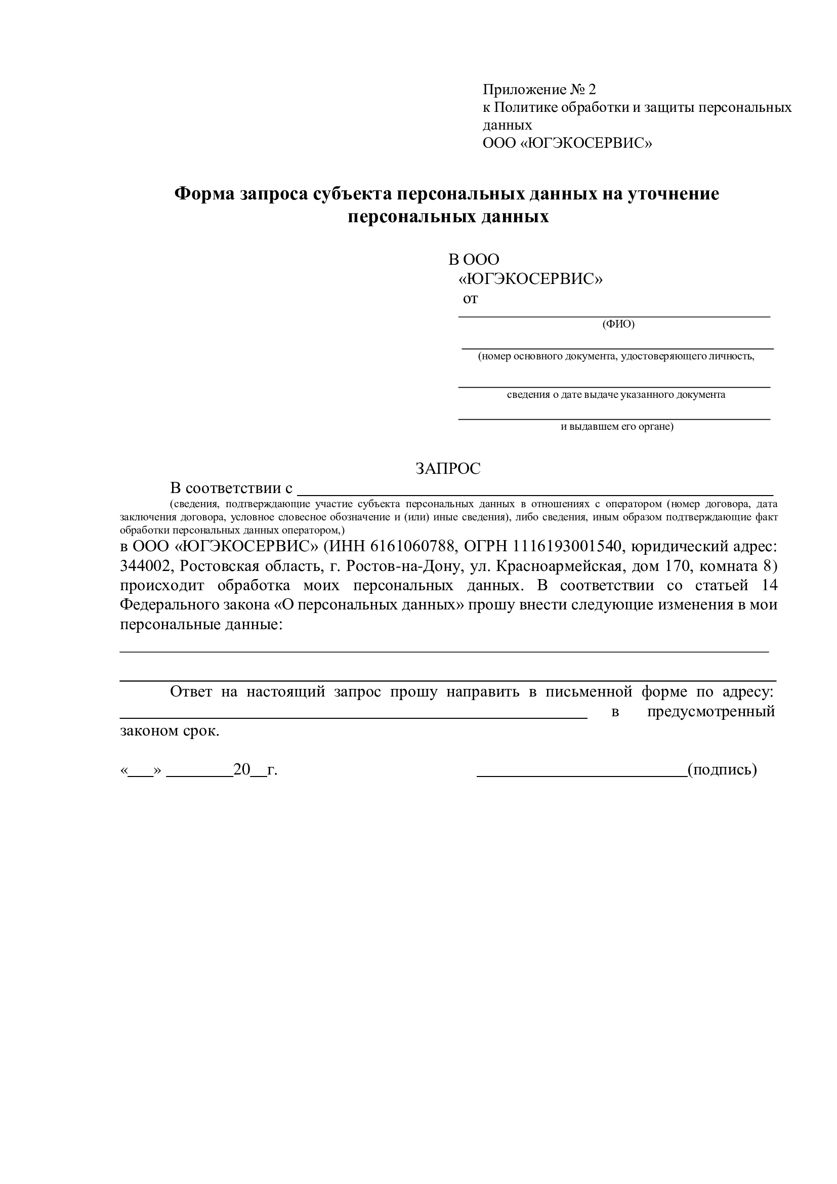 1.4.2. Субъект персональных данных вправе требовать от Общества, осуществляющего обработку его персональных данных, их уточнения, блокирования или уничтожения в случаях, когда такие данные являются неполными, устаревшими, недостоверными, полученными с нарушением законодательства либо не соответствующими заявленным целям обработки, а также может принимать законные меры для защиты своих прав.